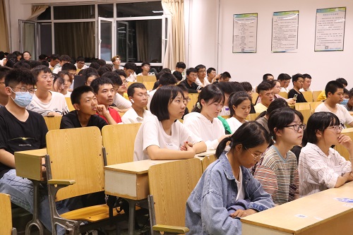 9月24晚,w88win体育官网入口组织2021级新生在3号教学楼310、311、312、314、315教室观看“山理工,把我讲给你听”入学教育报告会。
