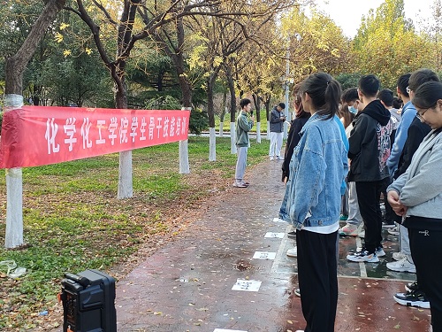 第三个环节是驿站传书,以小组为单位,各小组内选出5人,成一列排好,待工作人员告知最后一位志愿者一个词语后,成员之间仅用肢体语言进行传达,由第一位志愿者说出答案。比赛开始后,各组志愿者配合默契,勠力同心,争先取得优异成绩。