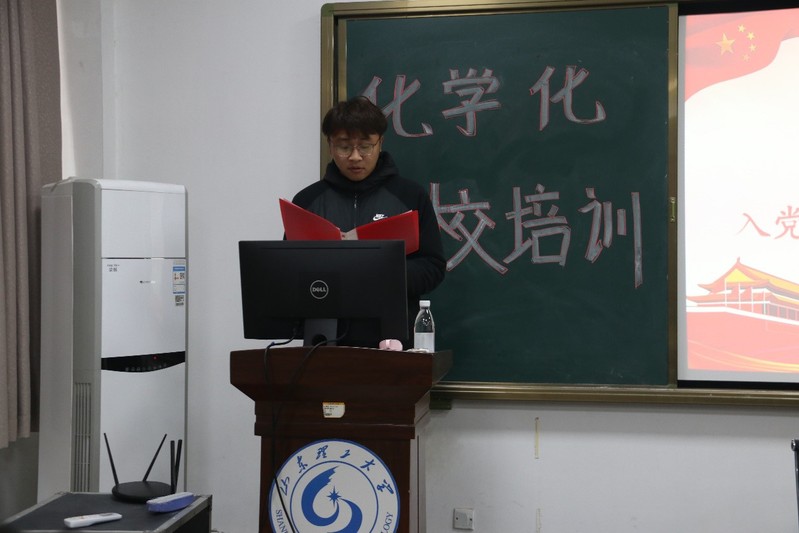 仪式进行第三项,学员代表张弛代表全体学员发言。他表明自己的入党态度并代表全体学员做出承诺:严格遵守课堂纪律,认真学习党课课程,诚信考试,时刻维护党的纯洁性。