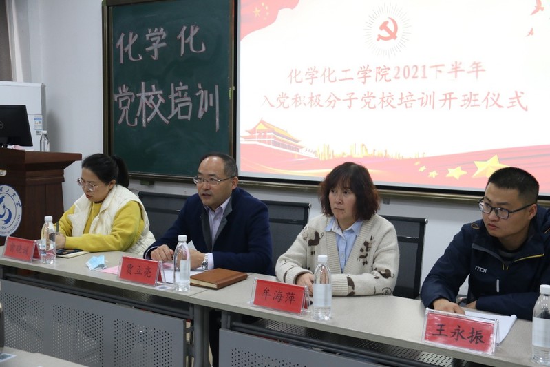 仪式进行第四项,贾立亮发表讲话。他对参加此次培训的学员表示热烈的祝贺并对全体学员提出要求:一是要明确入党动机,坚定理想信念,献身共产主义事业,更好的为人民服务;二是要进一步夯实理论基础,树牢政治标准;三是要进一步增强宗旨意识,全心全意为人民服务,做到知行合一。他希望全体学员要珍惜和重视学习机会,努力做到严肃学习纪律,认真听课,以实际行动争取早日加入党组织。