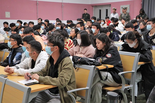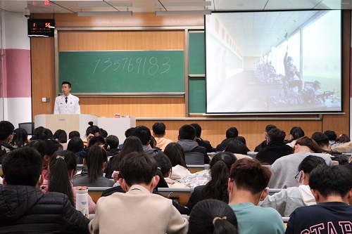 刘忠浩等退伍军人依次从生活作息、衣食住行、内务要求三方面向同学们介绍部队生活,并分享自己在部队时的训练瞬间和各种比赛活动,展示了部队的丰富生活。此外,姜蔚羽着重介绍了关于军种和兵种的知识。在他们分享之余,同学们身临其境地感受到部队中团结、严肃又不失乐趣的生活,认识到给自己的人生道路增添一份迷彩色将会是一段难忘的经历。