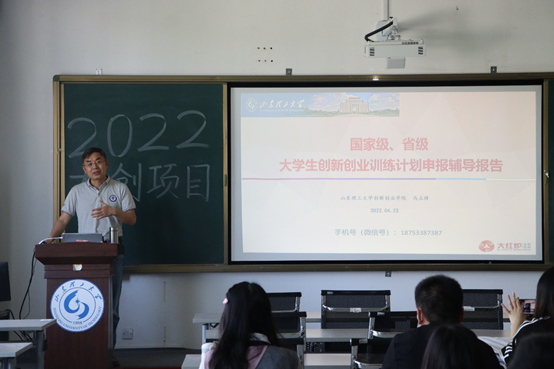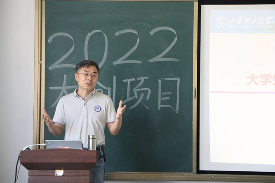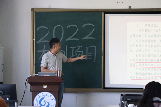 对项目负责人的培训中四位主讲人分别从大赛简介、项目汇报ppt、答辩礼仪、常见问题分析四个方面为同学们进行培训。张新园主要从“大创简介、项目类型、验收标准、申报要求、项目报送、注意事项”六个方面进行讲解,结合自身参赛经历,进行详细介绍,其中,张新园着重强调“互联网+、创新杯、挑战杯”三种类型的赛事不同的区别及注意事项。王瑾结合参赛时的汇报ppt向同学们介绍项目汇报ppt的制作过程。李天浩主要从答辩礼仪等方面进行介绍,并强调申报书、申报内容以及创新点的重要性。徐子彧主要分析参赛过程可能遇到的问题,并进行详细解说,并鼓励员工积极参赛,并期望同学们取得佳绩。