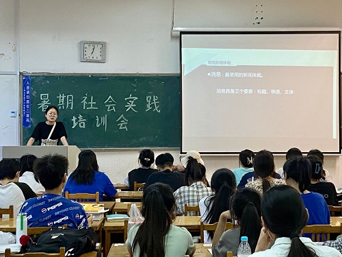 新闻负责人对于新闻培训分两部分展开。一是新闻基本知识讲解,她讲到新闻即是对新近事实的报道,包含三个要素:标题、导语、主体,新闻写作要做到准确、鲜明、具体、简洁、生动。二是社会实践基本写作要点讲解,她讲到社会实践新闻写作时要注意写作角度,不能只局限于团队及成员自身,要拓展视野。她认为,社会实践新闻宣传并不只是为了宣传团队所做工作,而是更广泛地使大众关注团队所实践的话题、人群、地方等,促使问题深层挖掘,使更多正能量传递,让更多人参与。
