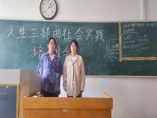 7月7日上午,“人生三部曲”社会实践团在13号教学楼403教室举行培训会,此次培训会由“人生三部曲”社会实践团队长于巾莹主持,团队全体成员共同参与。