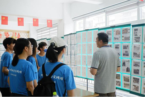 2022年7月6日,“Min”能社会实践团继续走访调研张店区车站街道新华社区,在调研完垃圾分类情况后,跟随李书记参观了新华社区的党群活动中心。实践团在参观中更加深刻地感知我们党一百年来的辉煌与不易,更加坚定要勇担时代的责任与使命,永远跟党走。
