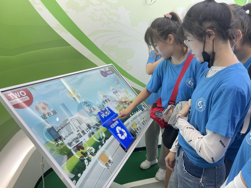 最后,在工作人员的引导下,实践团成员自行学习科普馆内垃圾分类的相关知识,不仅学习到“垃圾四分法”的具体实施过程,还学习到德国、日本等国家垃圾分类的经验。同时通过垃圾分类的小游戏来检测学习的成果,工作人员表示,通过一些融入垃圾分类的闯关小游戏,能够帮助来学习垃圾分类知识的人们检测学习的成果,同时也更能吸引孩子们,帮助孩子们熟练掌握垃圾分类的知识,从而爱上垃圾分类。