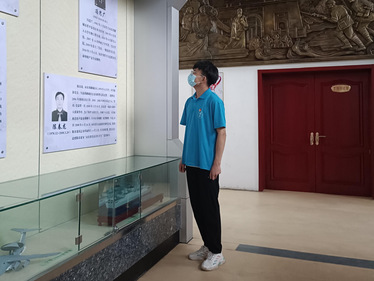 走进纪念馆内,首先映入眼帘的是象征革命事业蓬勃发展的红旗雕塑,环绕四周的汉白玉花卉雕塑表达了后人对革命先烈深切缅怀之情,并高歌颂扬了革命先烈的丰功伟绩。大厅内左右两侧的铸铜雕塑再现了“1947年刘邓大军渡黄河”与“1928年阳谷坡里暴动”的战斗场景。悬挂于大厅两侧的锻铜浮雕展现了民族独立、祖国解放和社会主义建设时期英雄群体人物的风采。大厅内陈列有224名烈士事迹和部分遗物,一幅幅珍贵的图片,一件件珍贵的文物,让团队成员感慨万千。曾几何时,峥嵘岁月,烈士们浴血奋战,为全国人民解放和发展而舍生忘死;建设时期,烈士们先人后己,为国家的繁荣和昌盛而无私奉献。岁月在奋斗中远去,昨日的战场以成为今日的神圣土壤,战争年代的腥风血雨,与和平时期的艰苦奋斗的场景在团队成员脑海中浮现。通过今昔对比,团队成员对革命烈士的敬佩之情油然而生,并深刻地感受到在革命先烈的奉献精神的鼓舞下,我国几代优秀的中华儿女奋力拼搏、无私奉献,为中华民族伟大复兴发挥了巨大的作用。