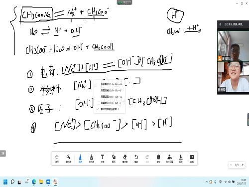 上午九点,魏鹏准备的高中化学化学反应原理课堂正式上课,根据学习进度,今天讲课的内容是课本第三章物质在水溶液中的行为中的前两节,第一节是水与水溶液,本节主要围绕水的离子积常数展开,并分析了影响其大小的因素;第二节是弱电解质的电离和盐类的水解,本节是考试的重点和难点,对课本进行了详细的讲解后,队员魏鹏又对课本中不涉及但考试中常考的知识点进行了补充,例如员工必做实验酸碱中和特性曲线的测定的讲解,包括实验步骤、仪器的认识和使用、酸碱指示剂的选用及颜色变换、终点的判断和误差分析等知识点。