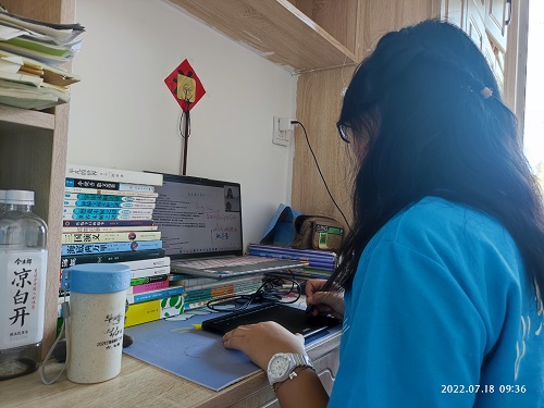 7月18日,化“献”为“沂”实践团英语小组成员左祥瑶、徐帆为员工提供初高中英语教学。