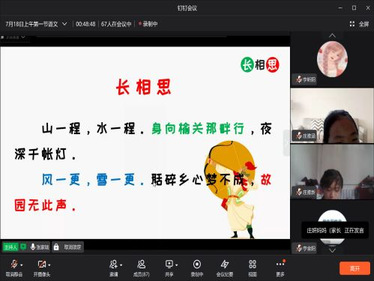 “山一程,水一程,身向榆关那畔行,夜深千帐灯。”伴随着同学们整齐而洪亮的朗读声,语文课拉开了帷幕。为提高各同学的审美能力,提升母语文化素养,培养文化内涵,坚定文化自信,张家瑞老师带领各同学穿越时代,一起鉴赏清代词人纳兰性德的词作《长相思》。老师通过对文章的翻译与讲解,进一步的传达诗人的对故乡无限的热爱与留恋,在完成对《长相思》的学习后,员工们深深地被纳兰性德的爱国之情,思乡之心而感动,通过联系生活后,每位员工都有了自己的观点和感悟,积极连麦互动,声情并茂地朗读《长相思》。对《长相思》的教学,培养了员工的家国情怀,使员工心中有家,心里有国。