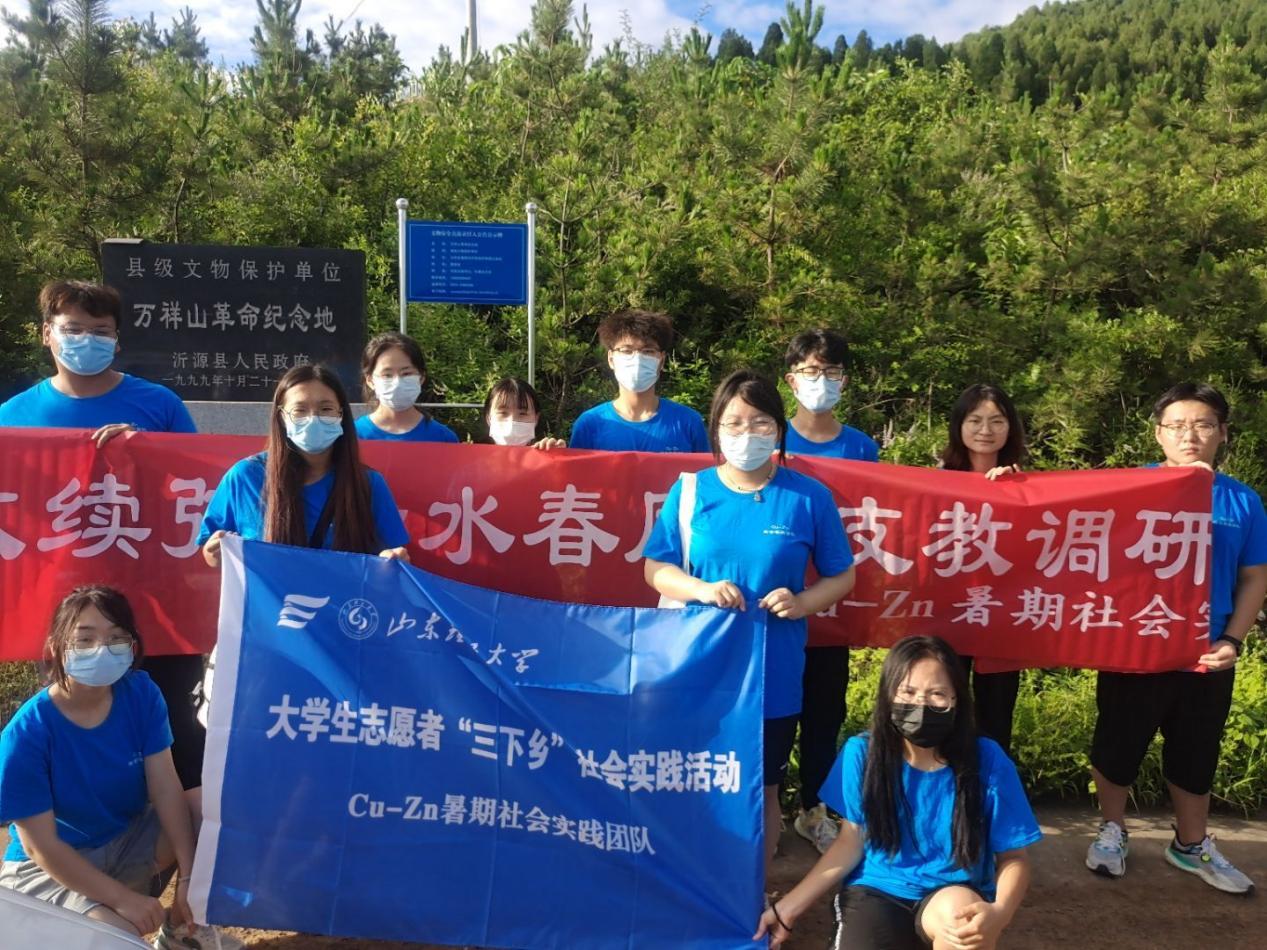 为更好地了解沂蒙文化,体会革命精神,7月23日,“Cu-Zn暑期社会实践团队”全体成员前往位于淄博市沂源县石桥村的万祥山,进行红色文化调研活动,赓续红色文化,传承红色精神。