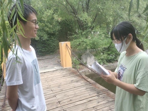 随后,团队成员在校外街道上随机采访年轻人,了解校外年轻人的婚恋观。采访发现校外年轻人的婚恋标准不仅是“喜欢”二字,他们会考虑多方面的因素,像家庭背景,性格能力等。在谈到结婚时间的时候,大多数都表示暂时没有结婚的意愿,想在进一步交往之后再做打算。