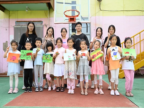 图为实践团与绘画室老师、小朋友合照。中国青年网通讯员 李邦恺 摄