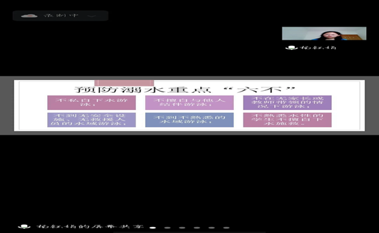 图为实践团成员杨钰娟讲解防溺水“六不”