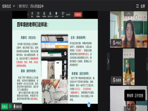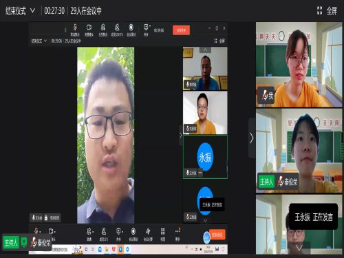 随后由大店镇中心小学董事长于晓东发表讲话。于晓东表示自己曾多次亲身走进线上云课堂,与同学、家长、老师们共听一堂课,并对线上课程给予高度评价:有深度,有知识,有活力,有着独特的魅力。在与同学们的交流、家长们的反馈中,由向日葵暑期社会实践团开展的线上支教课程,获得了同学们、家长、授课老师的一致好评。为团队成员牺牲暑假的休息时间来为大店镇中心小学的孩子们开设课程,增长见识,开拓眼界表示真挚的感谢,并对每位团队成员点赞。