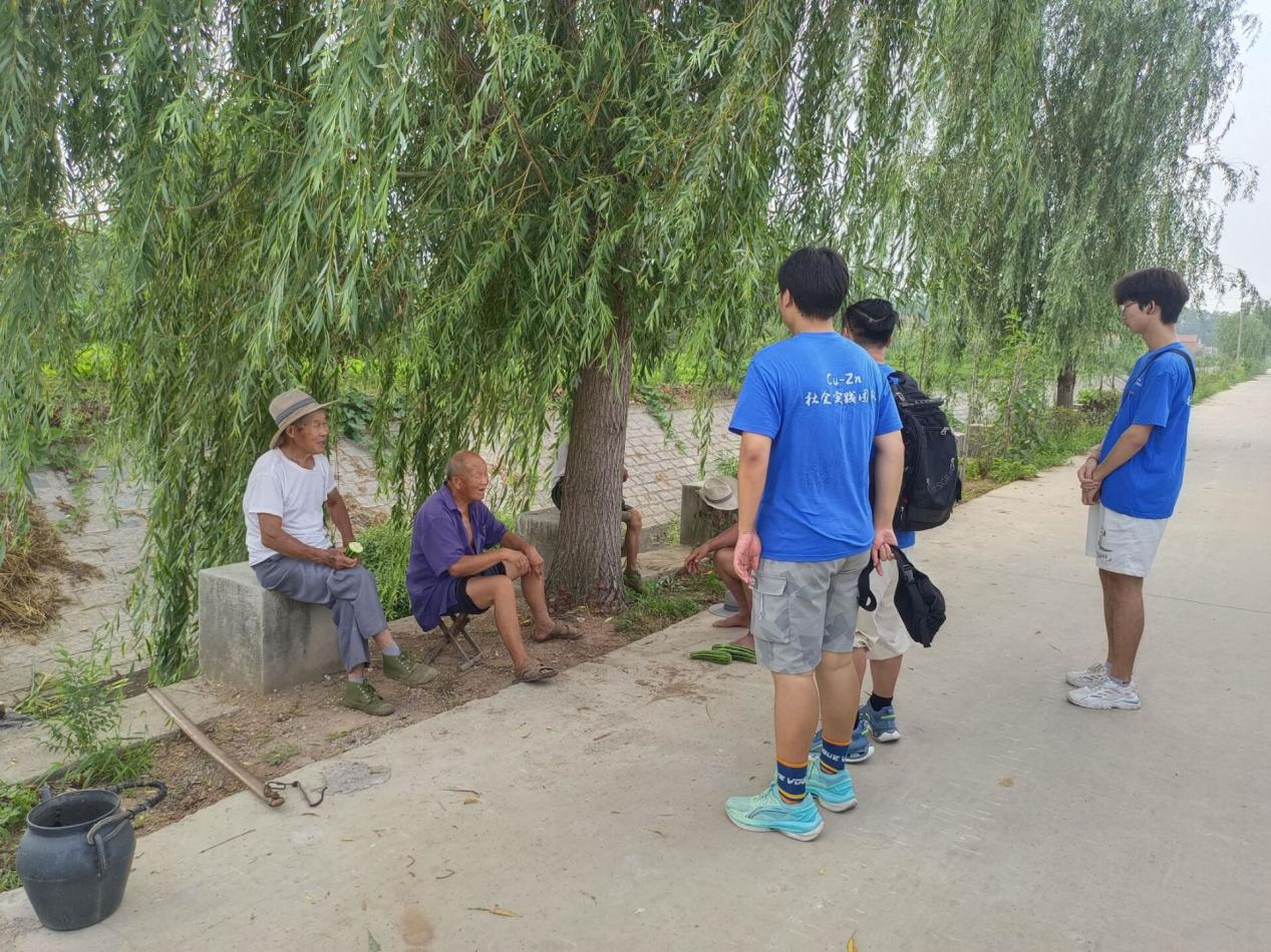 图为团队成员向当地居民询问沃土村的发展状况。通讯员 徐凤田 摄
