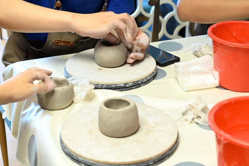 而后,在店员的带领下,团队成员开始尝试陶艺作品的手工制作。从揉泥、制坯、拉坯、修坯,到最后的造型、上色,在每一个环节中,实践团成员都能体会到陶艺的美丽和魅力。从最初的不成形的一块泥巴,到经过一道道工序、蜕变为一件独一无二的陶艺作品,这其中不仅充斥着手工艺者的巧思,更蕴含着中华传统文化的魅力。