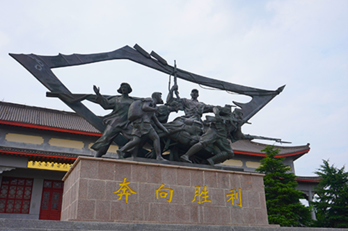”向日葵”暑期社会实践团首先来到烈士陵园中央广场,由实践团成员杨文玲担任讲解员,为大家进行讲解。广场正中有一座高4.22米、宽5.64米的花岗石群雕,群雕镌刻着我国解放军战士们冲锋陷阵、浴血奋战的样子,同时也展现了战士们前仆后继、英勇不屈的奉献精神。