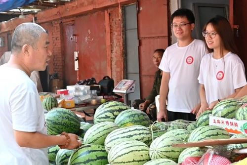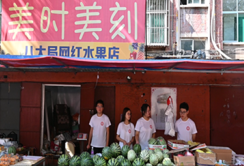 活动伊始,团队成员在水果店老板的带领下参观水果摊位,通过水果摊老板对摊位的讲解,成员们了解并学会了如何区分水果、打称收银、写价格标签、摆水果、挑烂果、搬水果等一系列工作,同时水果摊老板就售卖活动中可能出现的问题对实践团成员进行简单基础的培训。另外,水果店老板着重强调了在顾客买东西时,与顾客交谈的语气语调以及售卖水果过程中的注意事项。