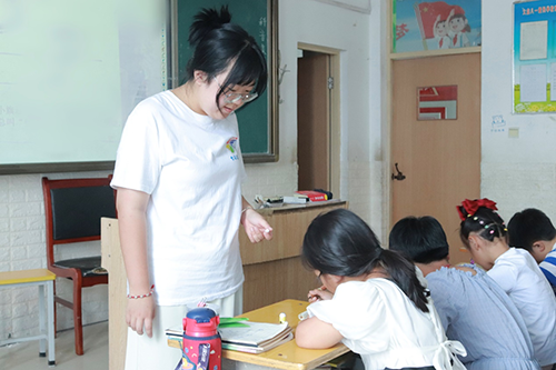 (图为实践团成员田雨正在监考三年级同学进行数学测试)
