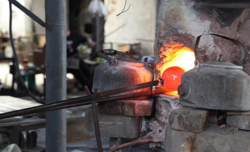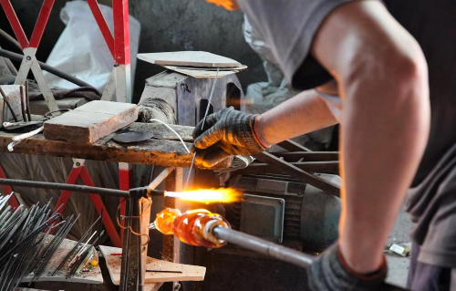 随后,为了进一步了解琉璃是如何由一块普通的石头变成精美的工艺品的,实践团的成员们分别向正在工作的工人们采访,工人们在得知实践团的来意后,很热情的向其展示琉璃艺品的制作过程。要知道,琉璃的制作过程是十分繁琐的,通常包括化料,挑料,吹制,塑形和退火五大部分,每一步都考验工人们的手法和耐心。一件好的琉璃,甚至要经过几十步工艺打磨方能得到,单是加热和冷却就得反复多次。其中最难的莫过于是对烧红的琉璃进行塑形了,不仅要用熟练地使用各种工具,还要对琉璃变硬的时机把握地相当准确,这对工人的技艺要求极高。
