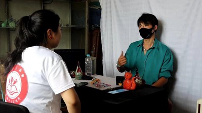 (图片为实践团成员采访琉璃厂老板)