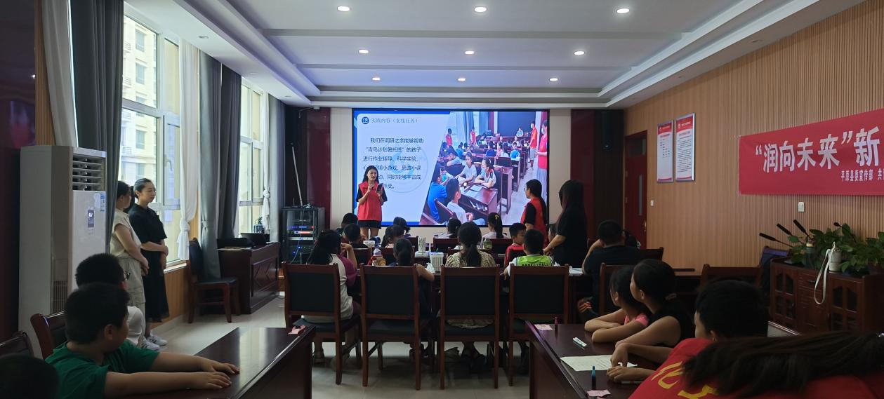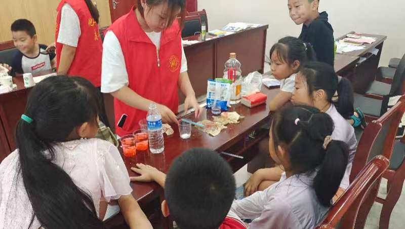 为全面贯彻落实党的二十大指导精神,培养志愿服务精神,提高社会责任意识,7月26日下午,山东理工大学予“Ni”社会实践团前往山东省德州市平原县莲花池社区,和“青鸟计划”暑托班的孩子一起进行物理化学小实验。