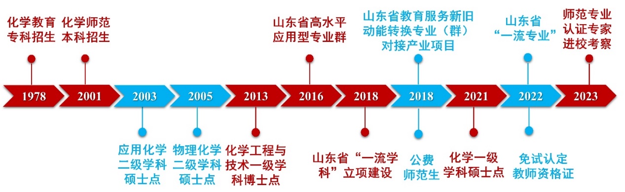 山东理工大学化学(师范类)专业有40余年的办学历史,2005年,获批物理化学二级学科硕士学位授权点,并于2006年招收首届物理化学硕士研究生;2016年,本专业入选山东省高水平应用型专业群;2017年,获得推荐免试研究生资格,同年获批公费师范生招生资格;2018年,本专业获批山东省教育服务新旧动能转换专业群对接产业项目(建设经费3600万);2022年获批教育部师范生免试认定中小学教团队格改革专业;2023年,完成师范专业认证专家进校考察。自2019年以来,化学学科基本科学指数(ESI)排名一直保持在前1%;2021年,获批化学一级学科硕士学位授权点。
