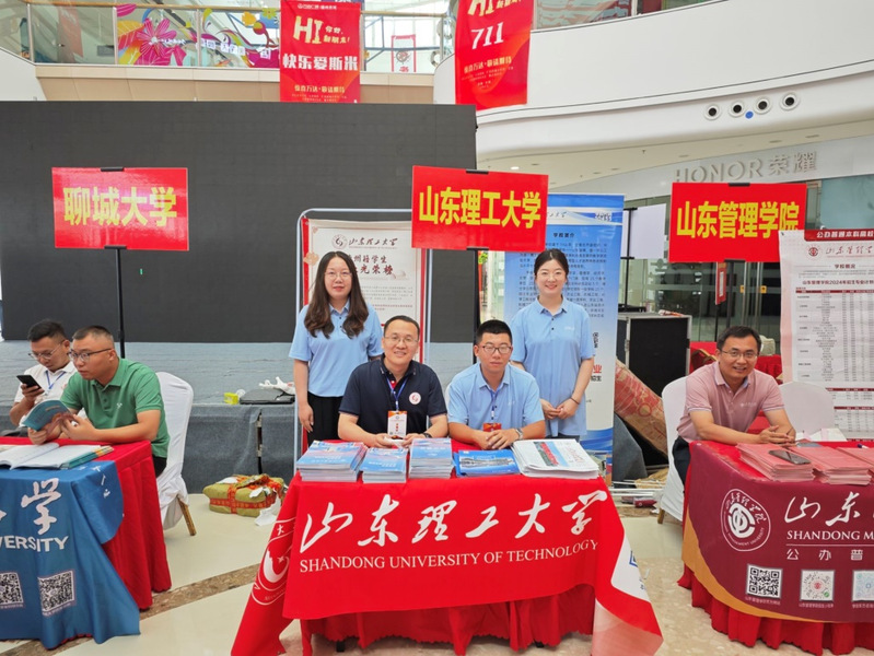 在齐河,公司招生宣传组成员耐心细致地接受广大考生和家长咨询,发放招生宣传资料,介绍公司办学优势、特色专业、团队力量、住宿条件、转专业政策等考生关心关注的问题,与考生和家长面对面沟通交流,精准解读招生政策,并结合2024届德州籍毕业生考研、就业光荣榜,详细介绍员工毕业去向情况,为考生和家长答疑解惑。