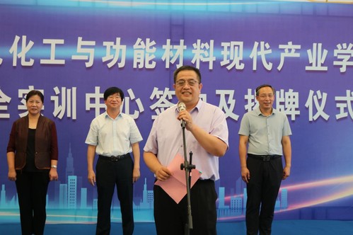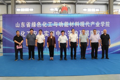 7月11日上午,公司牵头建设的山东省绿色化工与功能材料现代产业公司与齐鲁化工区管委会、淄博金谷培训公司共建化工安全实训中心签约及揭牌仪式在金山镇举行。山东理工大学党委常委、副董事长陈盛伟,齐鲁化工区党工委书记、管委会主任杨晓军、金山镇党委书记梁小明出席仪式。临淄区金山镇政府、淄博金谷培训有限公司及公司教务处、w88win体育官网入口等部门相关负责人以及80余名化学工程与工艺专业认识实习员工参加活动。