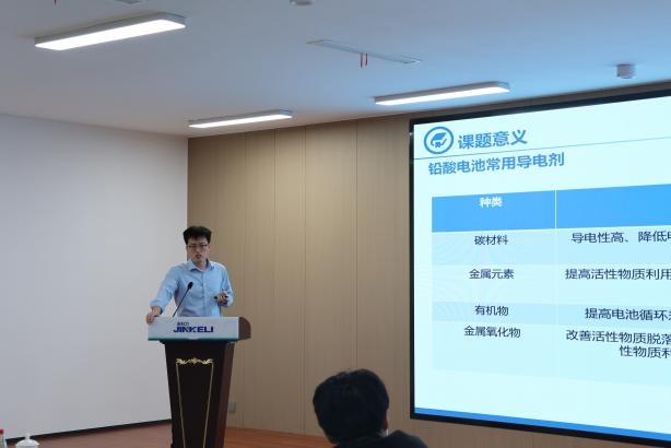 为推动铅酸电池的快速发展,助力铅酸电池在新发展机遇下积极应对市场需求,巩固市场地位和进一步提升市场竞争力,在先进电池材料产业创新研究院(以下简称:研究院)成立一周年之际,2024年9月30日由山东理工大学与山东金科力电源科技有限公司(以下简称:金科力公司)共同主办的《先进电池材料产业创新研究院技术研讨会》在金科力公司研发中心顺利召开。山东理工大学化学化工公司党委书记王介忠、经理杨乃涛、副经理周晋、校分析测试中心副主任李德刚、李忠芳教授及能源化工系、应用化学系、化学系、燃料电池研究所部分专业硕士研究生及金科力公司总经理邢延超、研发部总经理曹贵发、研发总监梁云超、金科力公司支部书记李凯等公司研发人员参加活动。