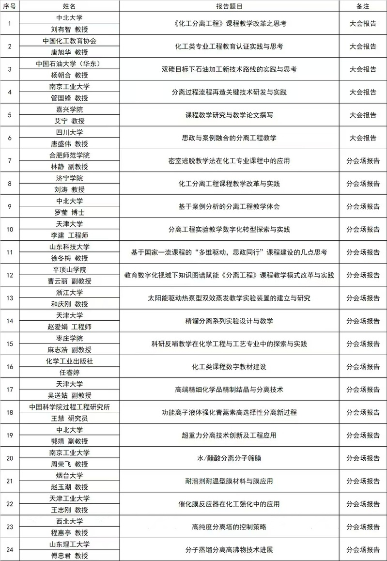 高校化工分离类课程教学科研骨干人员及教学管理人员;