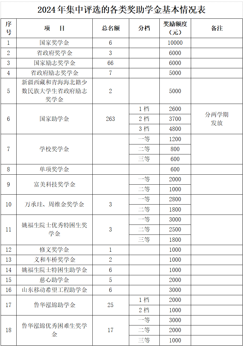 各类奖助学金基本情况