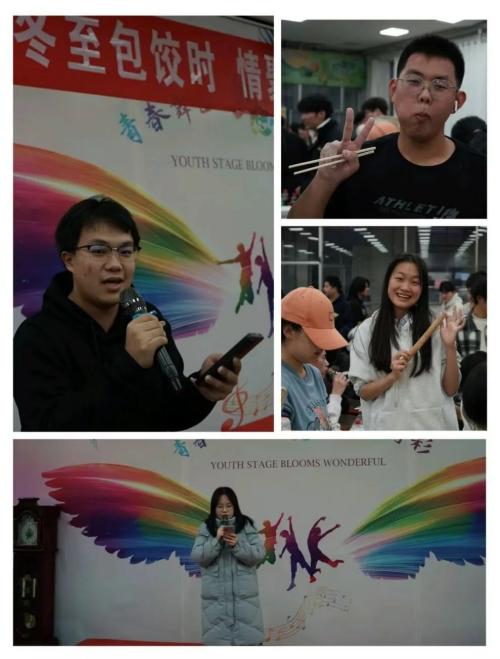 随着一盘盘热气腾腾的饺子端上桌,师生们围坐在一起,品尝着自己亲手包的饺子,分享着节日的喜悦。可贵的并不是那几个饺子,而是我们团坐在一起,毫不犹豫的分辨自家饺子的爽朗笑声,是镜头下肆意的笑容。此时,老师变身为我们的专属“站姐”,记录着这一帧帧的美好,一边亲自动手示范“高超的技艺”,一边去同学们的桌上蹭饺子吃。伴着饺子上桌的还有同学们的才艺表演,伴奏一响,才子佳人纷纷上场,展示一番自己的身手,终得大奖回归。