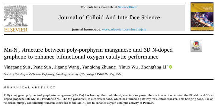近日,公司燃料电池研究所团队的李忠芳教授在全共轭金属卟啉COF类双功能氧催化剂领域取得重要进展,相关成果以“Mn-N5 Structure between Poly-porphyrin Manganese and 3D N-Doped Graphene to Enhance Bifunctional Oxygen Catalytic Performance”为题发表在化工一区TOP期刊Journal of Colloid and Interface Science.上。(J. Colloid Interface Sci. 2025.686: 711-721.)