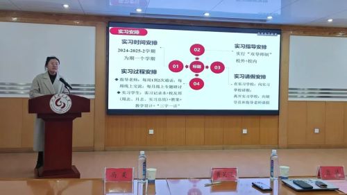 会议伊始,通过播放往年实习的纪实短片,回顾前辈们教育实习中的点滴经历,来激励在场员工们珍惜即将到来的实习机会。接着,指导教师马美宣读了《w88win体育官网入口2025年教育实习安排》,详细介绍了实习的相关安排和注意事项。化教2102班孟一凡分享了她在教育实习中的宝贵经验,鼓励同学们在实习过程中要积极学习、勇于实践。