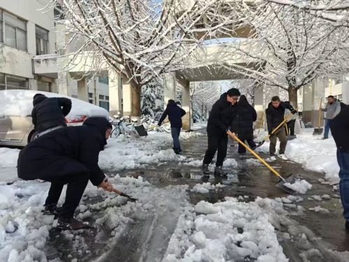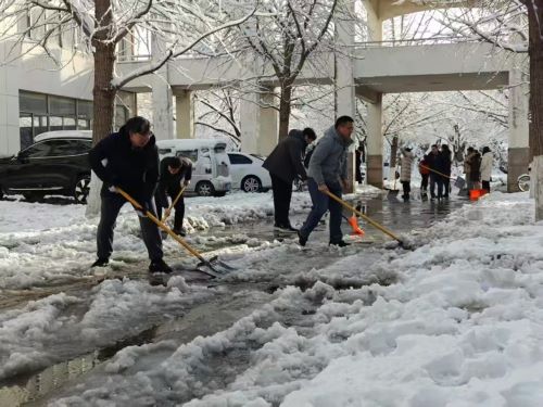 公司全体领导班子、教师党员、员工党员、员工干部积极参与,大家手持铁锹、扫帚等工具,迅速投入到扫雪除冰工作中。尽管天气寒冷,但师生们的热情却丝毫未减。大家分工明确,一部分人负责铲除路面上的积雪,另一部分人则负责清除冻结在地面上的冰块。在扫雪过程中,师生们相互协作,你铲我扫,忙碌的身影在雪地里构成了一幅动人的画面。
