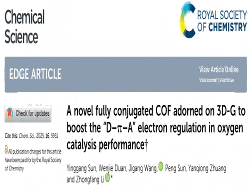 近日,公司燃料电池研究所李忠芳教授在新型全共轭卟啉类COFs的结构设计及催化剂电子调控氧催化性能提升取得重要进展,相关成果以“A novel fully conjugated COF adorned on 3D-G to boost the “D–π–A” electron regulation in oxygen catalysis performance”为题发表在SCI一区Nature index期刊Chemical science上。(Chem. Sci., 2025,16, 9951-9965.)
