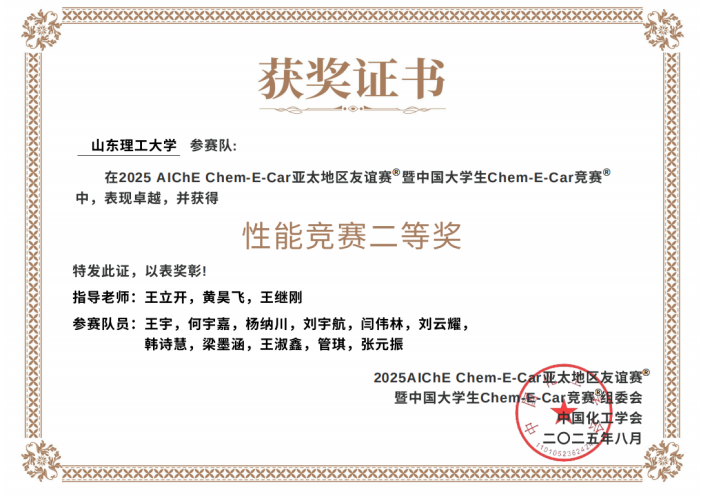 经过两轮激烈的角逐,山东理工大学w88win体育官网入口“稷下先锋队”在本次Chem-E-Car竞赛中取得了历史性突破。团队由队长王宇、副队长何宇嘉带领,成员涵盖w88win体育官网入口、电气工程公司、机械工程公司及美术公司的16位同学(包括杨纳川、刘宇航、闫伟林、刘云耀、韩诗慧、梁墨涵、王淑鑫、管琪、张元振等),充分体现了跨学科协作与融合创新的特色。团队成员所学专业覆盖能源化学工程、化学工程与工艺、化学、应用化学、电气工程及自动化、机械电子工程、美术等七个本科专业。竞赛过程中,团队不仅展示了扎实的专业知识与实验技能,更在学科交叉融合中激发了创新思维与创造能力,锻炼了组织协调与团队协作能力。在王立开副教授、黄昊飞教授和王继刚老师等专业教师的悉心指导下,团队最终在性能竞赛中从37支代表队中脱颖而出,勇夺全国二等奖,以“0.4 m”之差错失一等奖。这一成绩不仅是公司自参加Chem-E-Car竞赛以来首次斩获性能竞赛奖项,更充分彰显了山理工学子敢闯敢拼的精神风貌,也得益于公司在跨学科人才培养、创新能力提升和拔尖工程人才培育方面的成效。