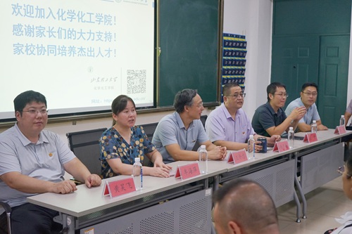 杨乃涛向家长详细介绍了化工公司的办学历史、学科与专业、团队力量、人才培养、员工教育管理服务等情况,着重对公司各专业的发展前景及员工的考研与就业进行了讲解。