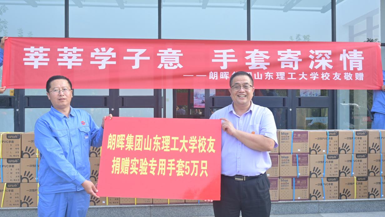 公司一行随后来到蓝帆集团朗辉石化股份有限公司,在蓝帆集团朗辉石化总经理、优秀员工王光亮的带领下参观了企业研发中心、中控室等场所。王光亮介绍了公司员工在公司发展情况,并结合自身成长经历向家长、同学们提出了建议和期望。参观结束后,王光亮代表朗晖集团员工向公司捐赠了5万只实验专用手套,以实际行动支持公司教学与科研工作。