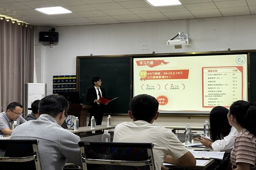 随后,十七位答辩同学依次进行答辩。他们从学业成绩、科研成果、获奖经历、志愿服务等多方面进行全方位展示,答辩结束后,评委从科研成绩、实践经历等方面进行提问并进行现场打分。
