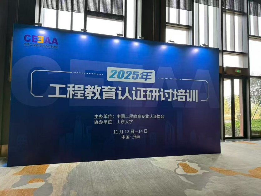 为深入了解工程教育专业认证标准,扎实推进工科专业建设,11月12日至14日,w88win体育官网入口副经理周晋、黄昊飞与应化系主任邢令宝一行,赴济南参加了由中国工程教育专业认证协会主办的2025年度工程教育专业认证研讨培训。