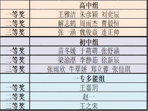 (注:名单按比赛顺序,同类别排名不分先后)