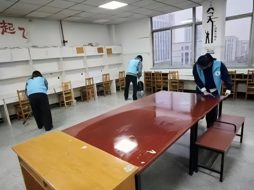 公司组织志愿者对教学楼5楼大厅开展专项清洁,全面清扫地面、擦拭墙面窗台、整理公共设施、清除卫生死角,以实际行动美化校园环境,引导师生共同守护文明家园。
